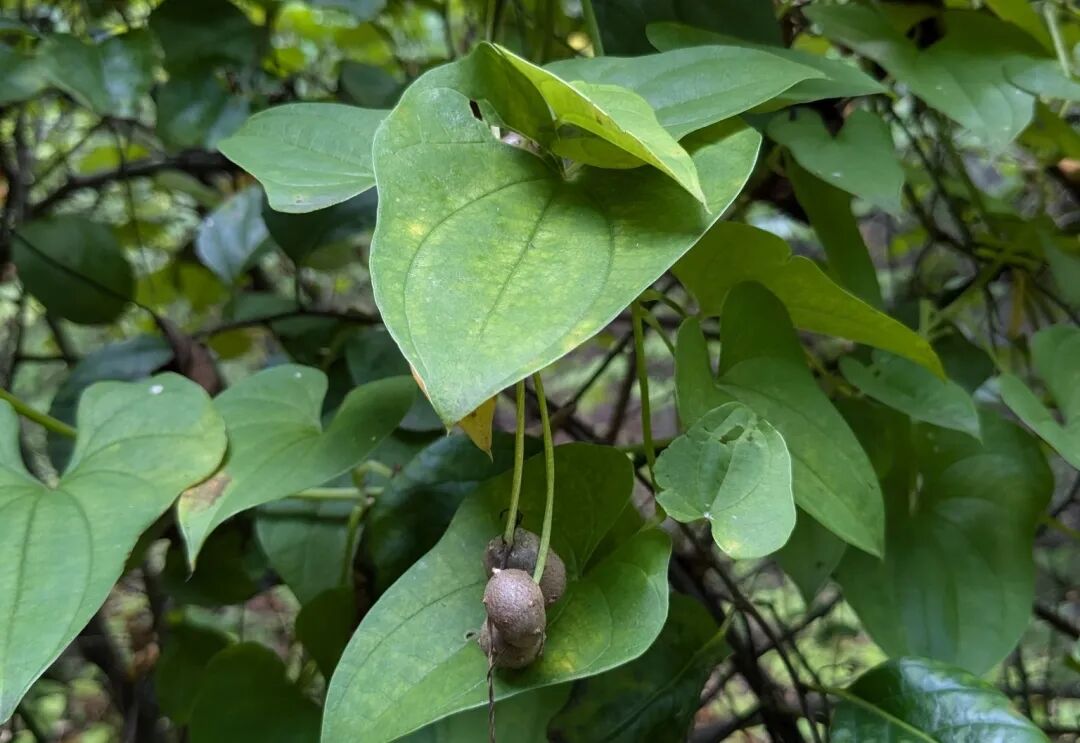 爬上藤架的山药(薯蓣 Dioscoreapolystachya)。它确实是藤本植物,但我们吃的山药棍是地下块茎,是不会爬上藤架的。这个叶子也画得完全不对。