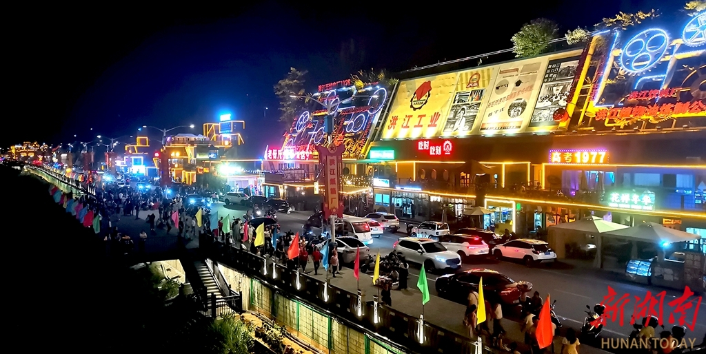 沅江之滨的“芳华年代”景区同样人气高涨。30余个工业风、年代风打卡点前,游客纷纷打卡拍照。今年9月,“芳华年代”景区二期项目全面完工,串联起“光影的故事”“摩登时代”“三棵桐树”“总厂1984”“白鹭洲湿地”“造梦工厂”“机车营地”七大文旅休闲区域,加上一期项目,景区业态和配套设施逐步完善,吸引了游客纷至沓来。夜晚,芳华年代景区成为游客品尝洪江美食、引吭高歌、围炉煮茶、把酒言欢的首选场所。