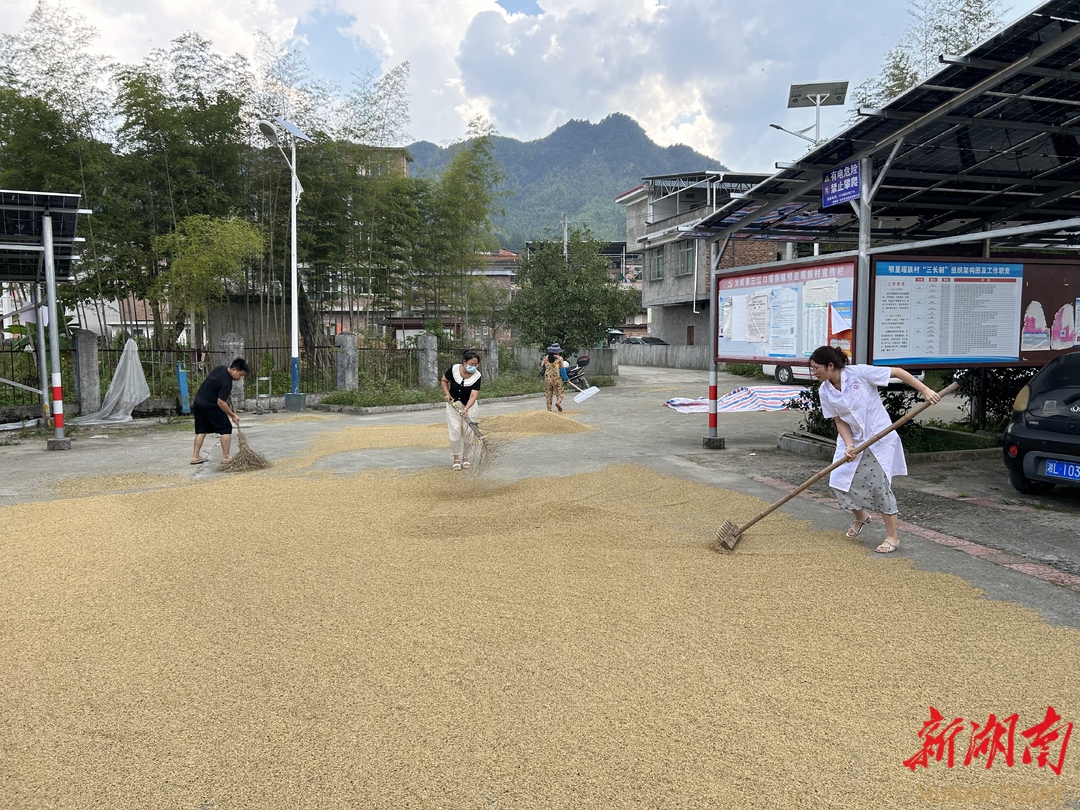 大众卫生报·新湖南客户端10月2日讯(通讯员 朱忠达 徐日红)“风雨无情人有情,医者相助暖人心。”10月1日,在郴州市汝城县三江口镇明星村,一场突如其来的大雨见证了三江口镇卫生院全体医务人员的无私奉献与责任担当。他们在下乡体检时,毫不犹豫地伸出援手,帮助村民抢收晾晒的稻谷,用实际行动谱写了一曲动人的爱心之歌。