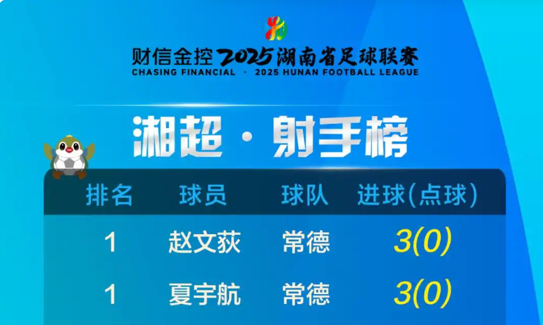 赵文荻以进3球领跑湘超·射手榜