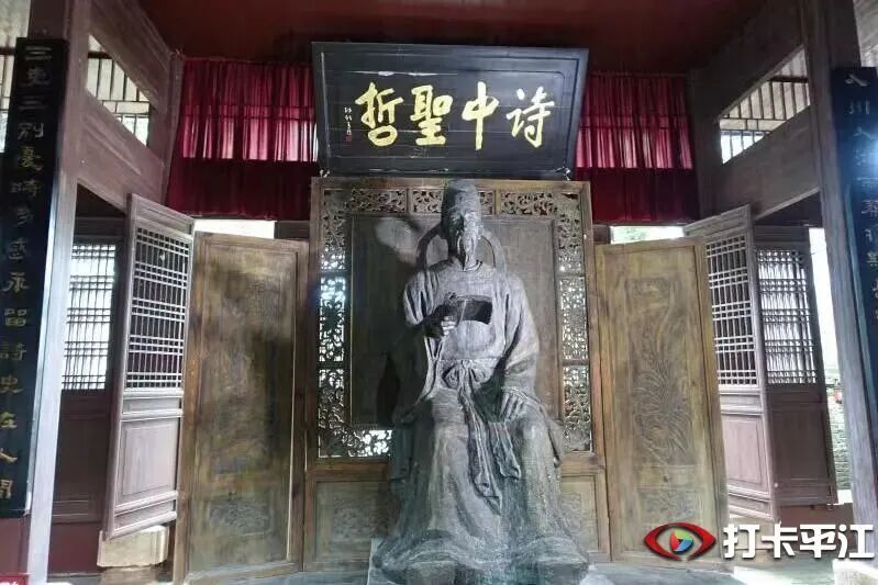 这座始建于唐朝的古建筑群,历经千年风雨,至今依然保持着原有的形制。据史料记载和史学家考证,杜甫晚年漂泊湖湘。途中因旧病复发,钱财用尽,只得沿汨罗江在昌江县(今平江)附近寻找朋友求医。不久,杜甫病逝,葬于小田天井湖。他的子孙为他在小田立下了墓,并且在此地为他守墓,杜甫的后代也从此定居于平江,现在小田村共有2000多名杜氏人士。