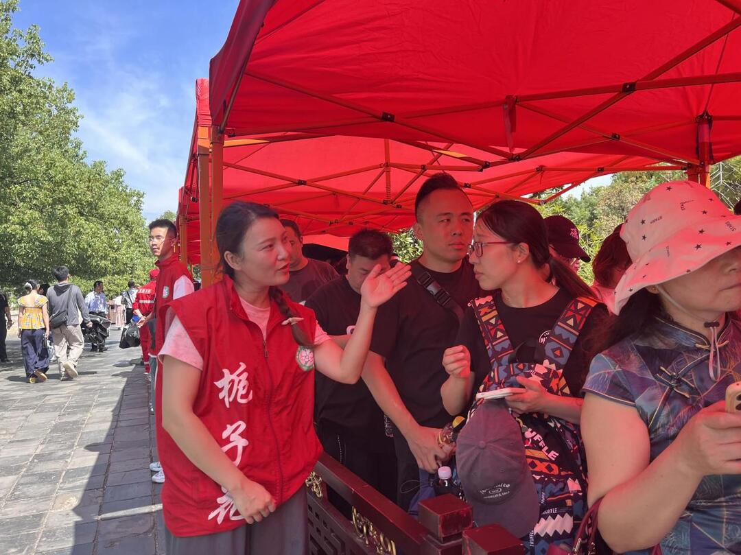 记者在现场看到,面对众多游客的询问,他们总是耐心解答,无论是景区游览路线,还是周边公共交通信息,都能详细告知。