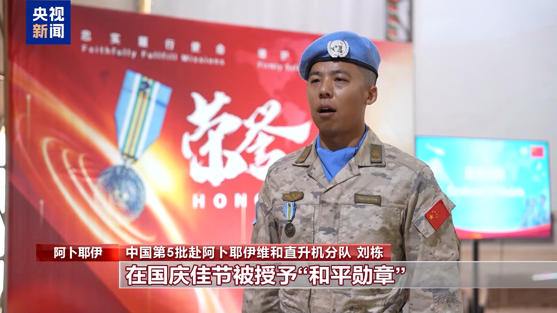 中国第5批赴阿卜耶伊维和直升机分队 刘栋:在国庆佳节被授予“和平勋章”,我感到非常有意义。勋章是对我的褒奖,更是对我的激励。我将不忘初心使命,牢记维和誓言,继续履行好使命任务,绝不辜负党和人民重托。