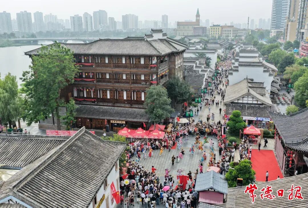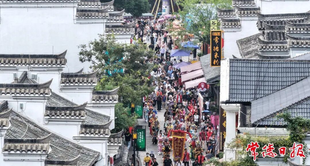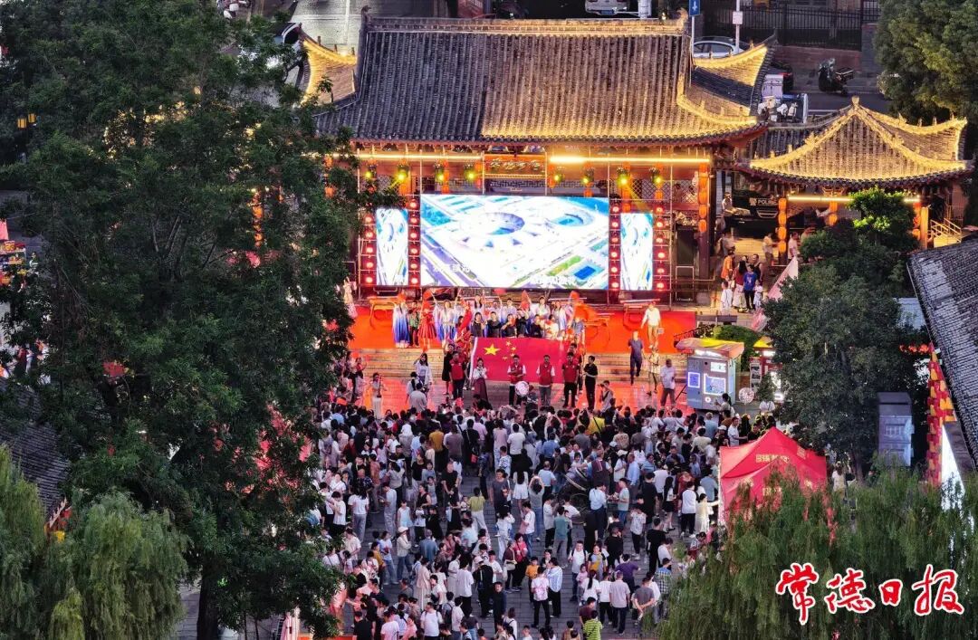 麻质画、木雕、刺绣等非遗项目,吸引大量游客驻足体验。传统文化游园会让游客仿佛穿越时空,感受古人的雅趣与智慧。鸳鸯走马楼中,惠民演出与相声表演让人流连忘返, 状元门附近的快闪活动更让人们热血沸腾……当晚《常德往事》连开4场,满足了游客观看的需求。