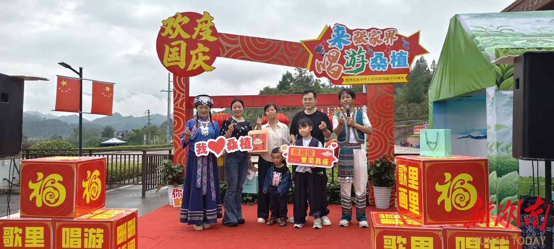 湖南日报·新湖南客户端10月2日讯(通讯员 甘政)“唱到‘钥匙不到锁不开’,仿佛能触摸到马桑树下的深情。”10月2日,在桑植洪家关白族乡的贺龙桥头上,来自湖北来凤的游客李女士刚学完《马桑树儿搭灯台》,便拿着获赠的桑植白茶感慨不已。这个国庆假期,张家界桑植县升级推出“来张家界唱游桑植”主题活动,将红色记忆与民歌魅力融入山水风光,延续“五一”文旅热潮,打造出独具特色的假日体验。
