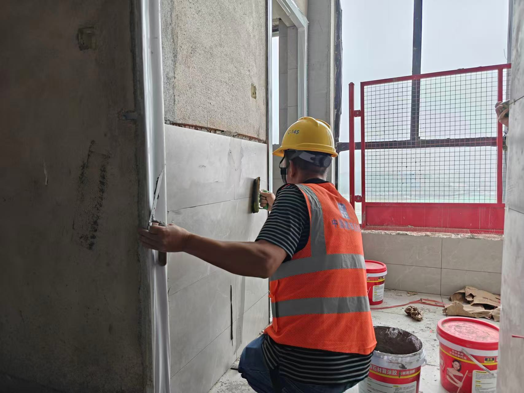 自开工以来,项目建设抢工期、赶进度。在学生宿舍楼14号栋内,房间结构已然清晰。工人唐俊军提着一桶瓷砖用砂在认真贴砖。他说:“这是手艺活儿,虽然要赶时间,但可不能马虎。”