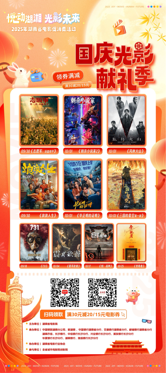 火爆的背后,是优质影片与政策红利的“双轮驱动”。为进一步激发市场活力,近日,湖南省电影局对“悦动湖湘·光影未来”电影促消费活动进行了升级,自10月1日起至31日,覆盖全省、惠及全民的电影消费季全面展开。