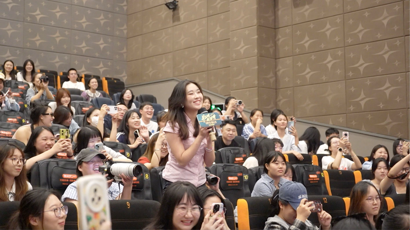 在潇湘青春影城(悦方店),影片编剧兼导演佟志坚携主演张天爱、邬家楷、石云鹏亮相,引爆观众热情。互动环节中,张天爱在学习长沙方言“nià塞”时被“L”和“N”的发音难住,亲切可爱的模样赢得满堂欢笑。