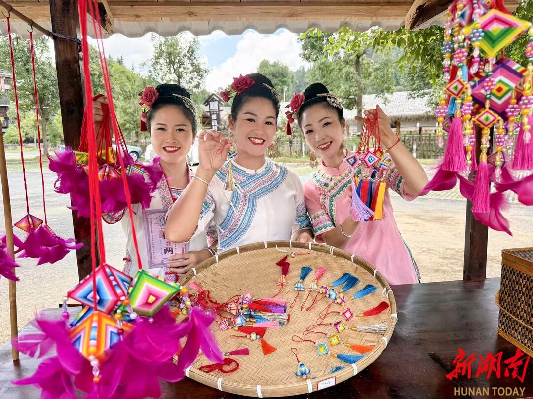 侗家姑娘向游客介绍侗家织品 通道县委宣传部供图