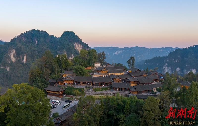 十八洞村,夕阳余晖下的梨子寨与青山交相辉映,景美如画。辜鹏博 摄