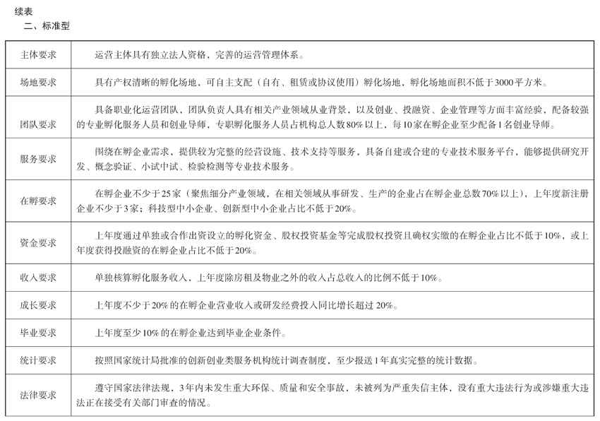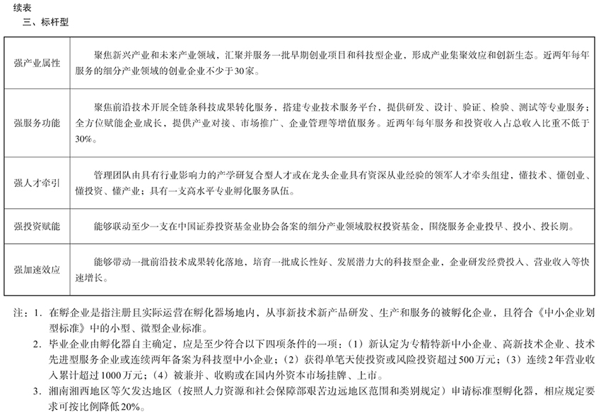 第七条 本办法认定的孵化器包括基本型、标准型、标杆型三种类型。