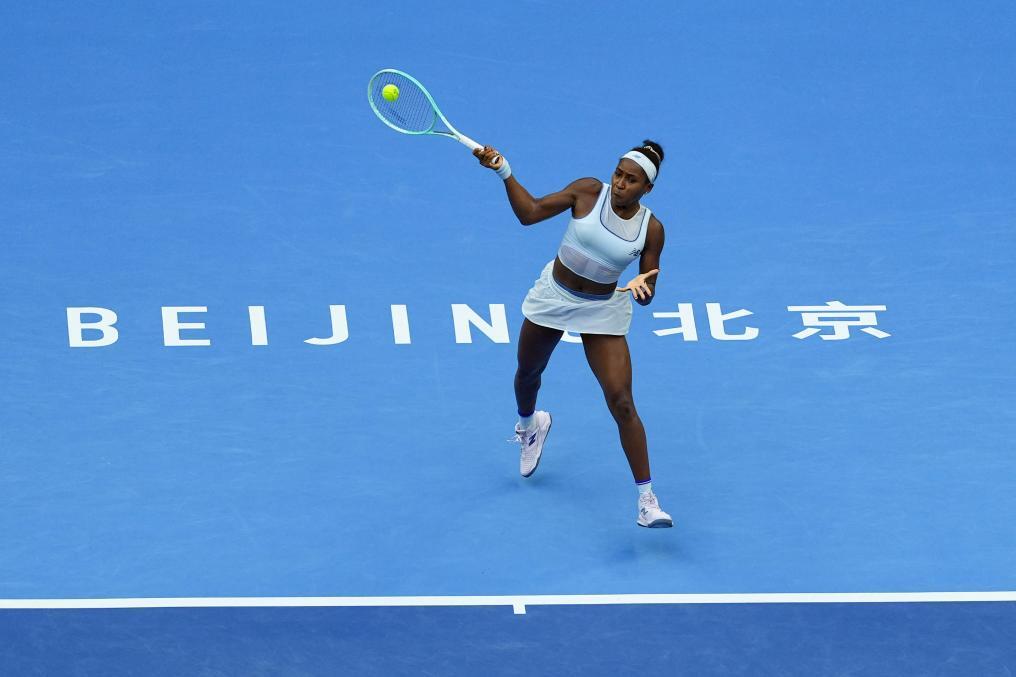 10月2日,高芙在比赛中回球。新华社记者 谢晗 摄
