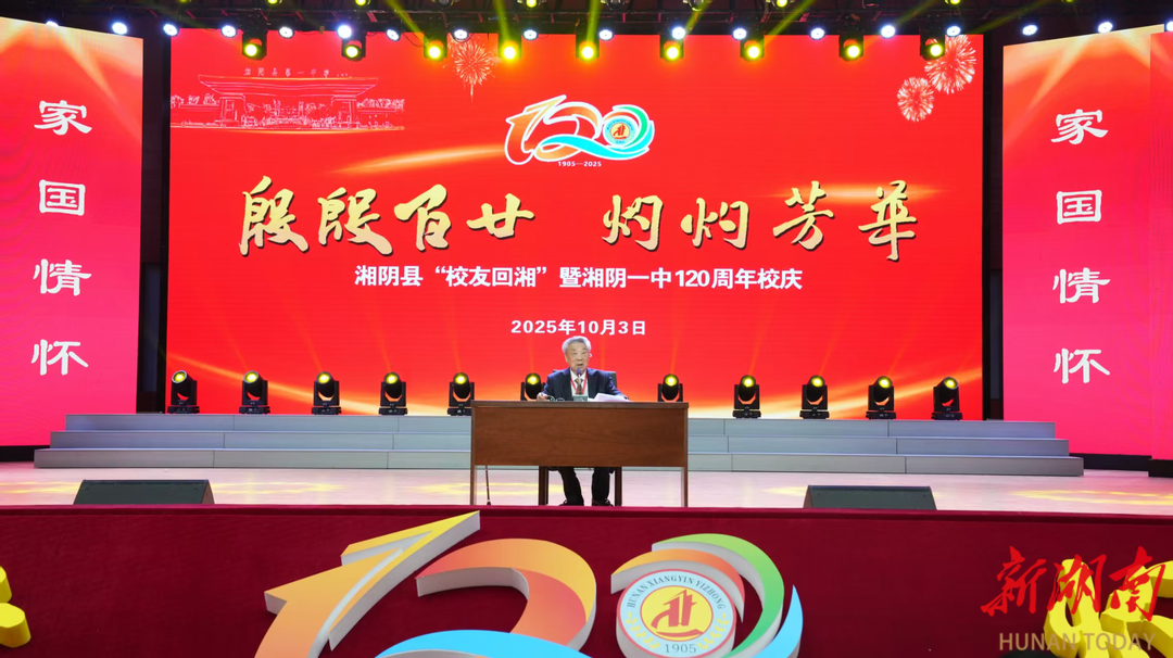 “湘阴一中,作为当地最耀眼的教育名片,120年来,不仅沉淀了立德树人的厚重底蕴,更始终与时代同频、与家乡共振。”岳阳市副市长陈阁辉真诚致贺时表示,“岳阳市政府将一如既往全力支持湘阴一中的建设与发展。衷心希望广大校友能常念母校恩、常思家乡情,带着智慧、资源与情怀,投身家乡建设浪潮;希望湘阴一中坚守教育初心,以百廿校庆为新起点,在培养栋梁之材的道路上再谱新篇。”