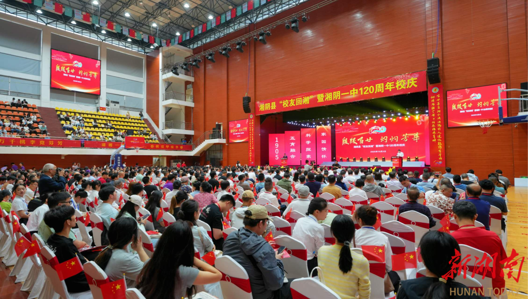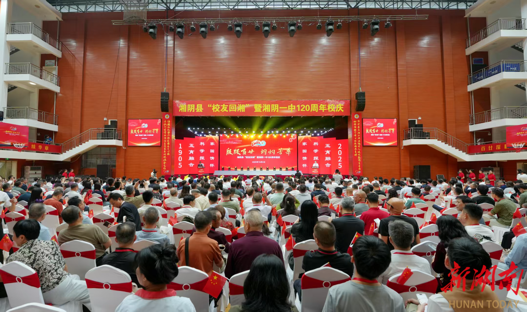 湖南日报·新湖南客户端10月3日讯(记者 徐亚平 通讯员 屈艳 徐敏 徐晚晴 )国旗鲜艳,彩旗飞扬。今天的湘阴一中披上了节日盛装,该县“校友回湘”暨湘阴一中120周年校庆大会在这里举行。自海内外归来的1500多名校友,齐聚母校,感念师恩,共绘家乡发展蓝图。湖南省教育厅党组成员、副厅长兰勇前来致贺时称,此次活动是打通“借才引智”最后一公里的有力举措,希望广大校友敞开心扉,建言献策,把自己的经验、资源转化成为母校高质量发展的强大动力。