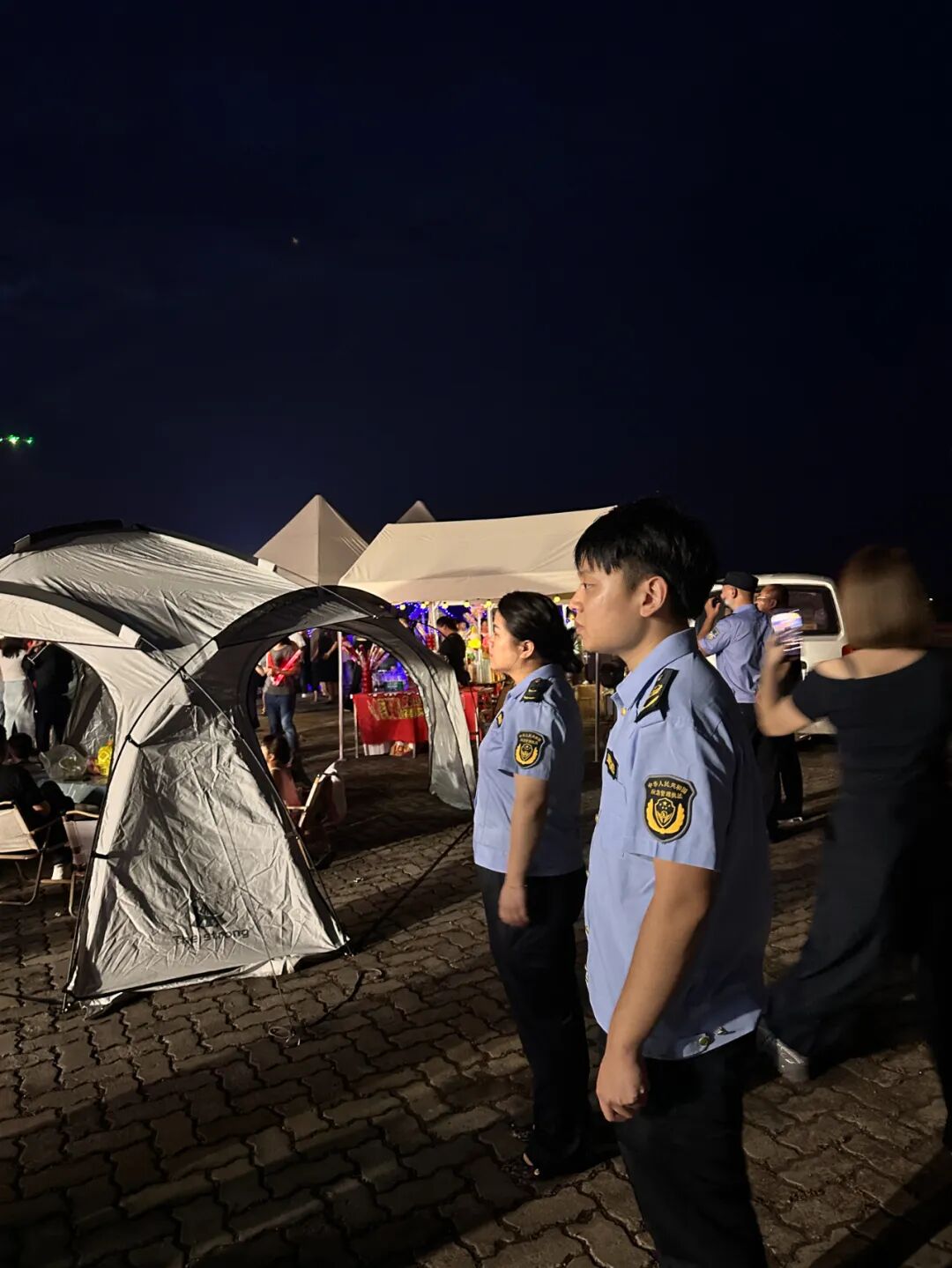 10月1日晚,大通湖区应急管理局在国庆大湖音乐汇活动现场检查调度车辆通行、临时用电、湖岸防护措施等安全情况,确保活动安全有序。