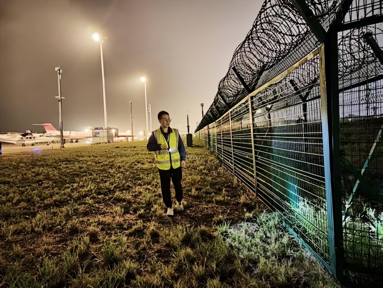 “双节”期间,长沙机场围界巡场监控员24小时值守,以责任筑牢机场空防安全防护网。