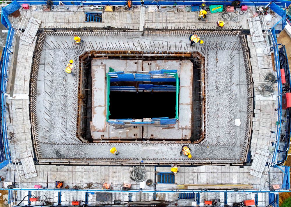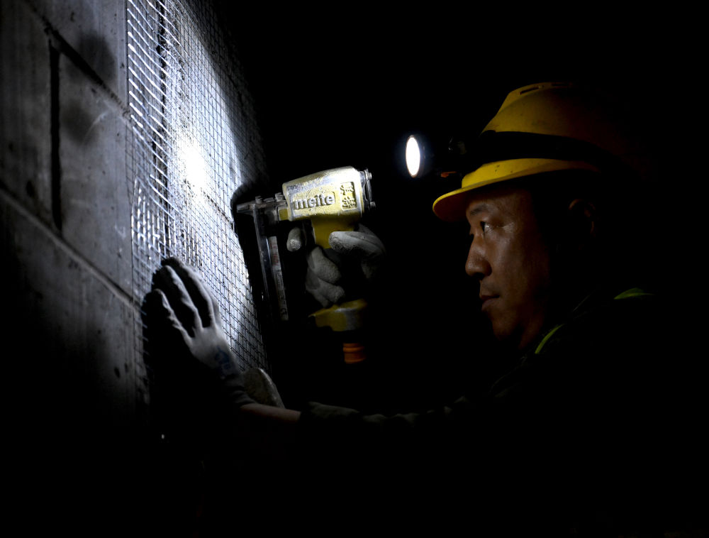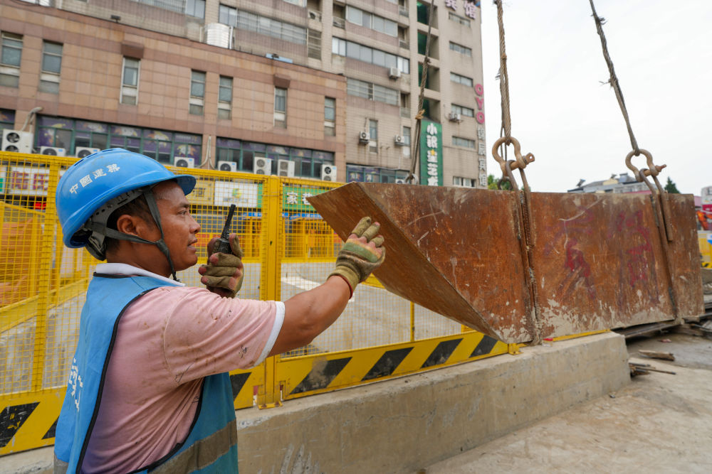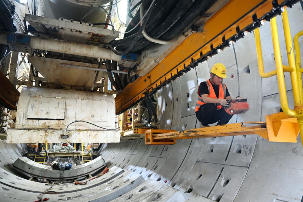 ↑ 10月2日,中建三局的工人在江苏省南京市建宁西路过江通道江南连接线主线隧道东延工程施工现场工作。新华社记者 李博 摄