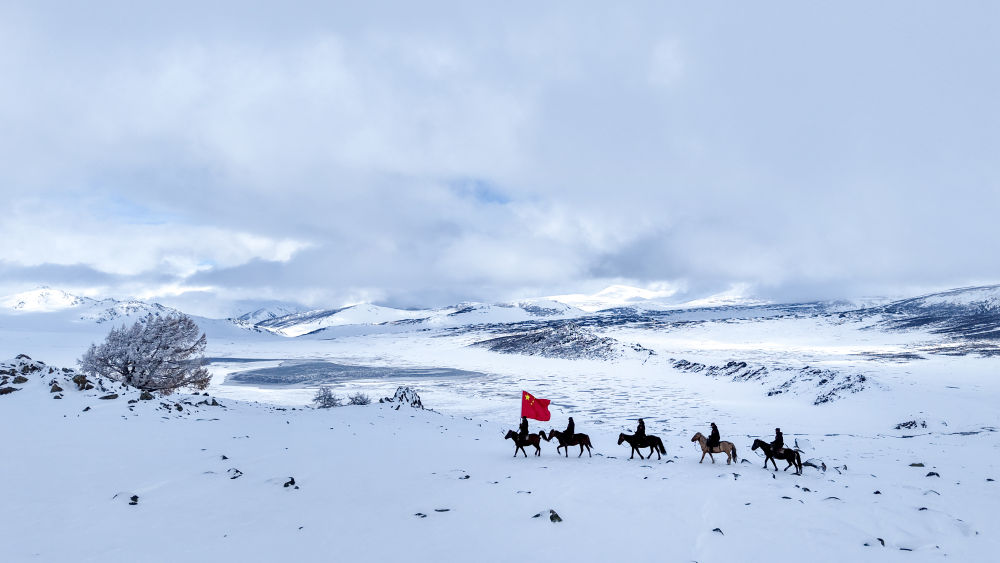 ↑ 10月2日,新疆阿勒泰边境管理支队喀纳斯边境派出所巡护队对山口要道进行巡逻踏查。新华社发(王友波 摄)