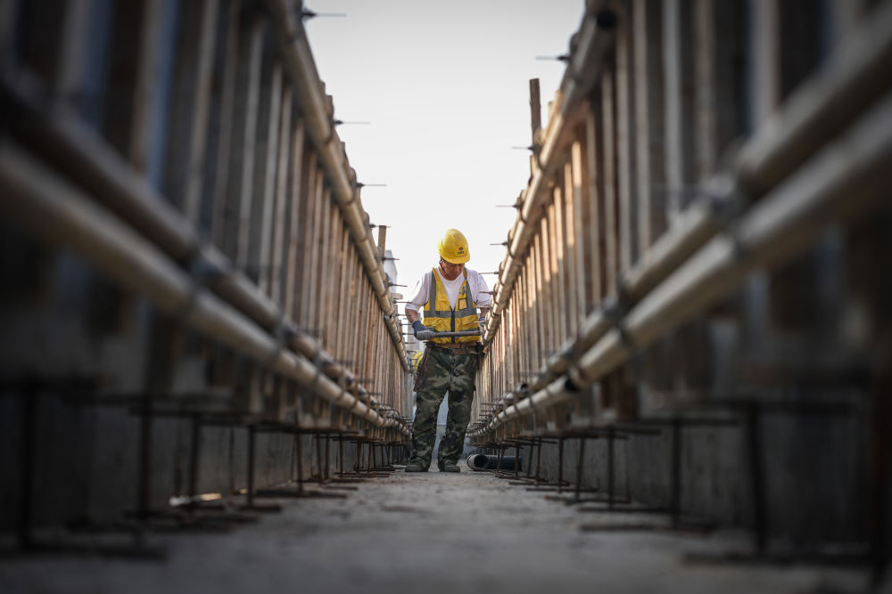 ↑ 10月2日,中铁二十局工人在河北省石家庄市城市轨道交通5号线一期03工区施工现场作业。新华社记者 牟宇 摄