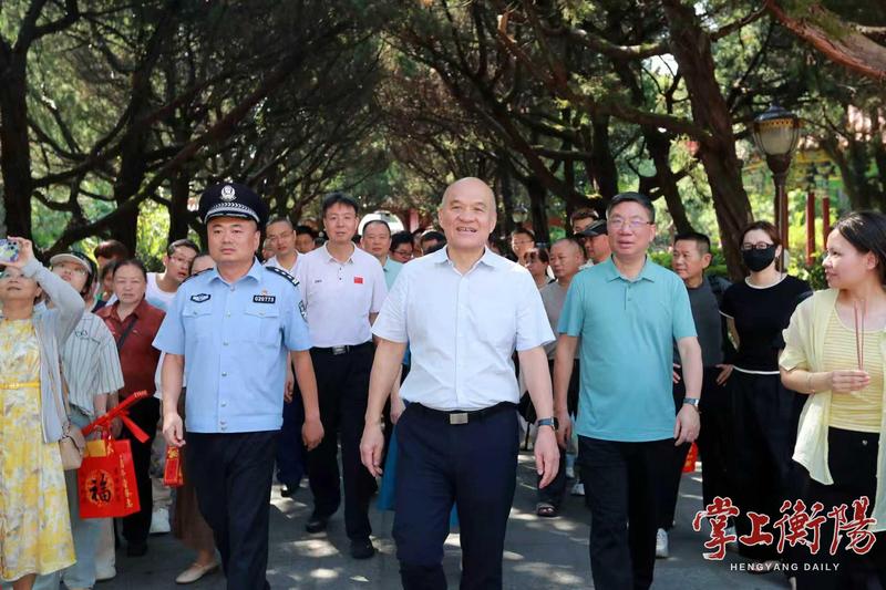 10月2日,衡阳市委书记刘越高赴南岳区调研假期文旅消费和旅游安全工作,看望坚守一线的工作人员。他强调,要深入学习贯彻习近平文化思想,不断优化文旅市场供给,促进业态融合发展,扎实抓好旅游服务保障和安全生产,促进消费市场持续繁荣活跃,为深入实施“制造立市、文旅兴城”发展战略作出更大贡献。