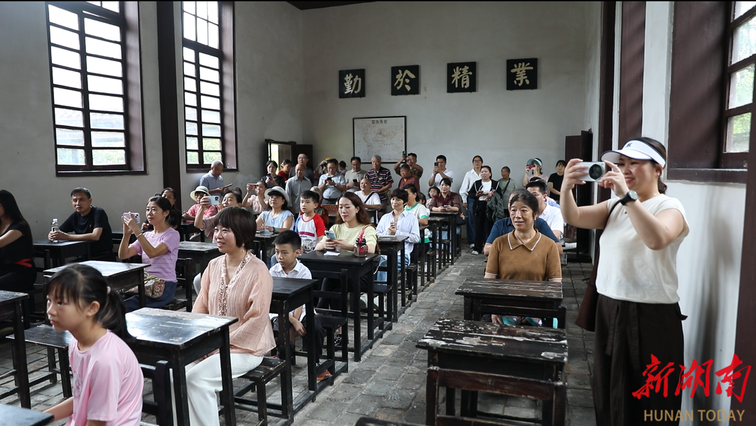 清晨的景区里,清脆的童声讲解吸引游客驻足。“小小红色讲解员”以深情讲述,将少年毛泽东励志求学的往事徐徐铺展,令游客仿佛穿越时空,重回那段风雨如磐却信念如火的岁月。1993届校友周新良特地从广东佛山赶回,带着8岁的儿子和家人重返母校。她表示,除了参观母校,还计划带孩子走访陈赓、黄公略故居等红色景点,让红色精神从书本走进现实,“希望孩子明白,红色精神不只在书本里,更在我们走过的每一条路上”。