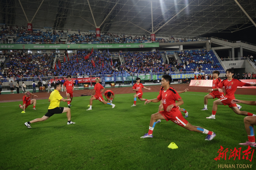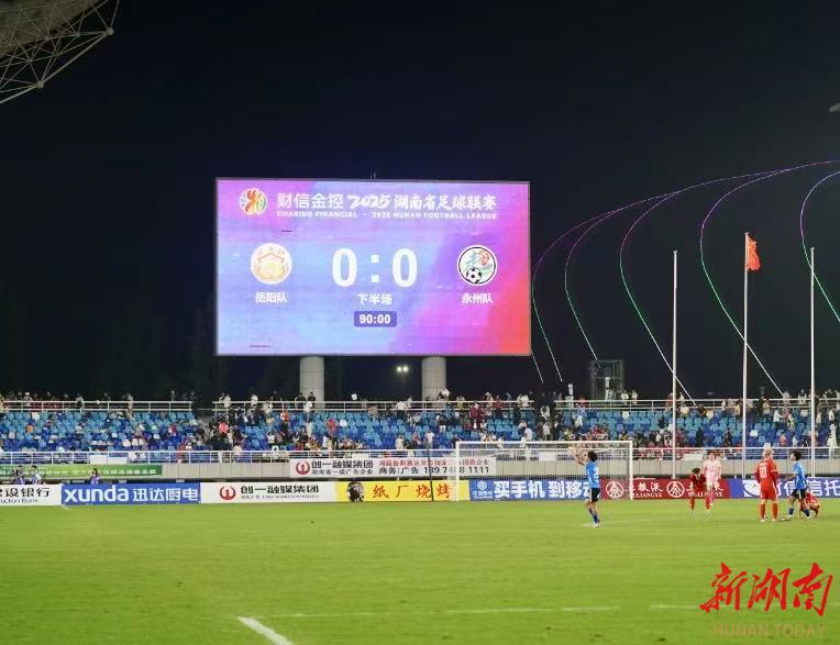 10月3日晚,“湘超”第四轮比赛岳阳队与永州队比赛,在岳阳市奥体中心展开,场上双方争夺异常激烈,经过95分钟激战,双方最终以0:0战平。湖南日报全媒体记者 徐典波 通讯员 徐伯益 摄影报道