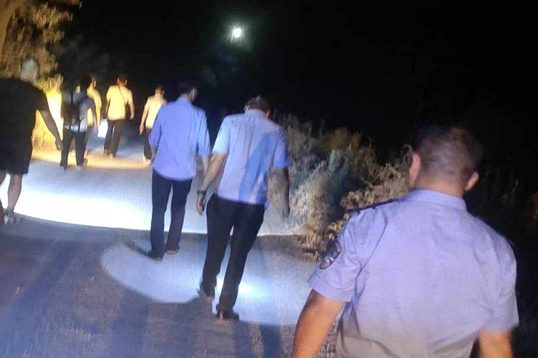 接警后,大盛派出所高度重视,立即组织精干民辅警,联合村委等协助力量,携带手电筒以及其他救援装备,火速进山展开拉网式搜索。搜寻人员克服夜间能见度低、山路崎岖等困难,通过不间断的呼喊、探照灯扫视和痕迹分析,经过一日夜22小时的艰苦努力搜寻,最终于10月3日15时30分许,在大水塘村山脚的一处护栏旁的低谷下找到了体力不支、瘫坐在地的老人。
