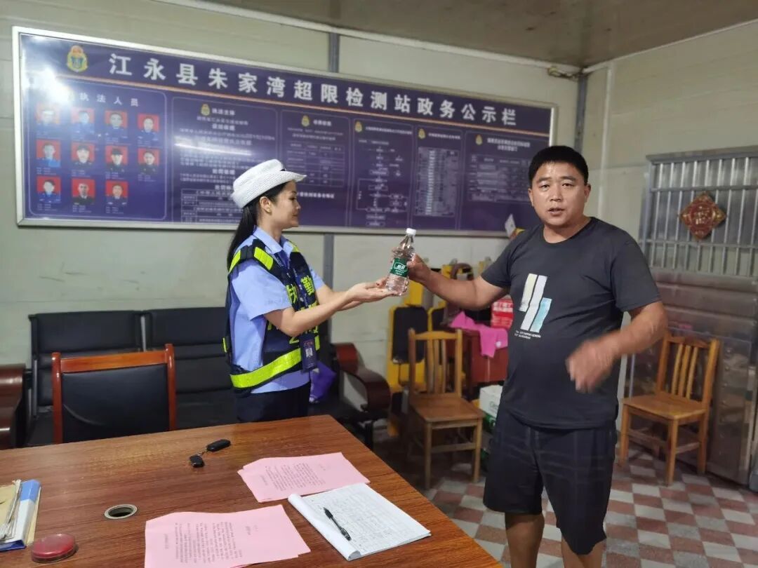 凌晨0时至4时,正是货车司机容易出现疲劳驾驶、违法载人等交通违法行为的高发时段。在辖区内G538线、S348线等货车通行密集的国省道重点路段,治超中队及一中队设立临时检查点,主动为过往的货车司机送上茶水和饮料;并为司机播放交通安全警示教育片,详细讲解疲劳驾驶、超速、超载、不按规定车道行驶等违法行为的危害性,强调夜间行车安全的注意事项。