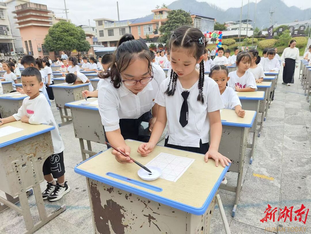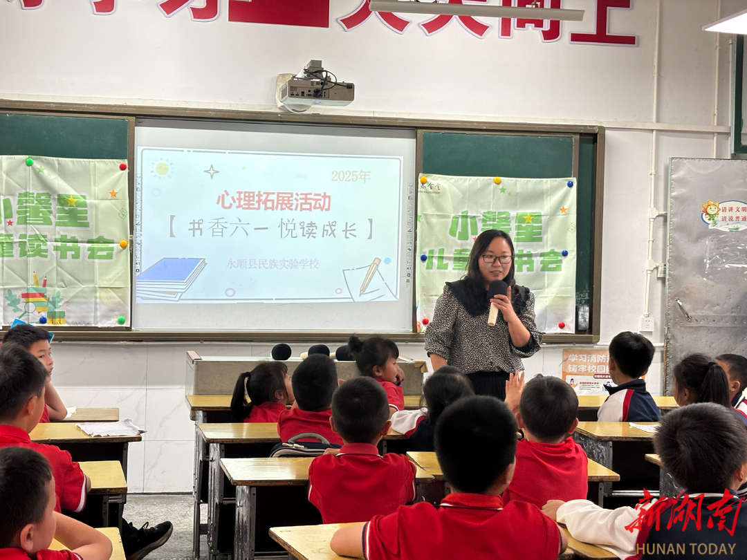 课余时间,黄梅常与学生在校园中交流。他们或在“爱心驿站”共读《地理中国》绘本,感受长江、黄河“君不见黄河之水天上来,奔流到海不复回”的壮阔气象;或在“悦读空间”沉浸书香,领略文学世界的深远魅力。她还常指着校门口“万马归朝”宣传画,讲述“溪州铜柱”背后的历史,勾勒“中华民族一家亲,同心共筑中国梦”的美好愿景。这些触手可及的“立体教材”,将抽象的团结理念化为可感的校园风景,多层次、多维度构筑起师生共有的精神家园