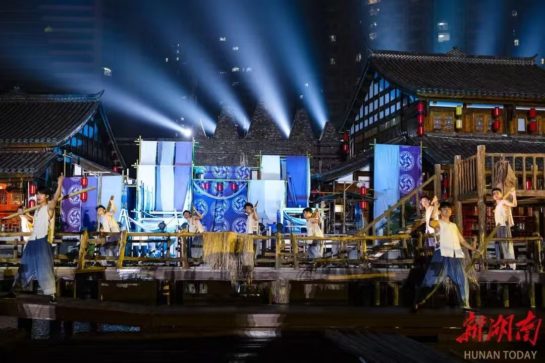 夜幕降临,穿紫河上热闹非凡。今年4月推出的大型行进式实景演出《常德往事》,吸引大量游客前来观看,成为常德现象级文旅爆款。“演出运用3D全息纱幕与时空折叠技术,融合船工号子、常德丝弦等非遗元素,将沅澧文明的粗犷与温婉交织成一幅历史长卷。”常德往事文化演艺有限公司总经理田浩文介绍,观众随剧情移步换景,从码头、河面到城墙,体验跨越时空的震撼。