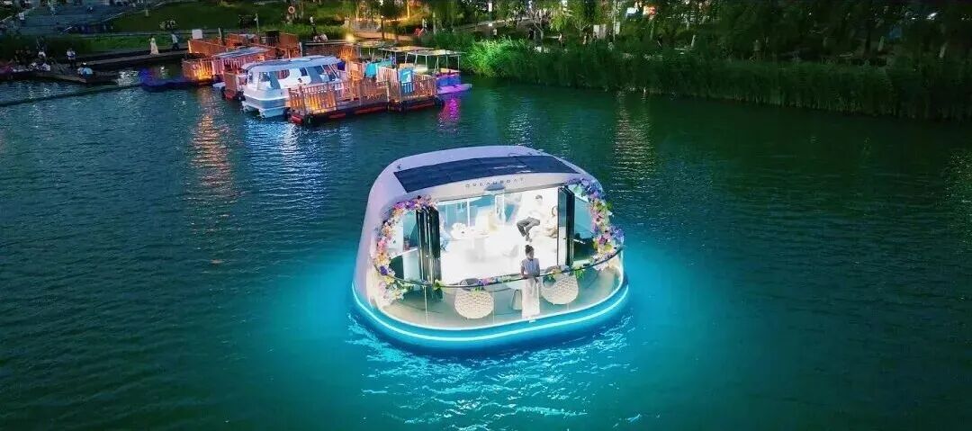 “梦幻亲子主题”的轻舟幻游,成了亲子家庭的“水上童话屋”,孩子趴在船舷看鱼群,家长在半封闭阳台铺好下午茶;新国风主题的 “未来之舟”,则戳中了年轻情侣和文化爱好者的心。