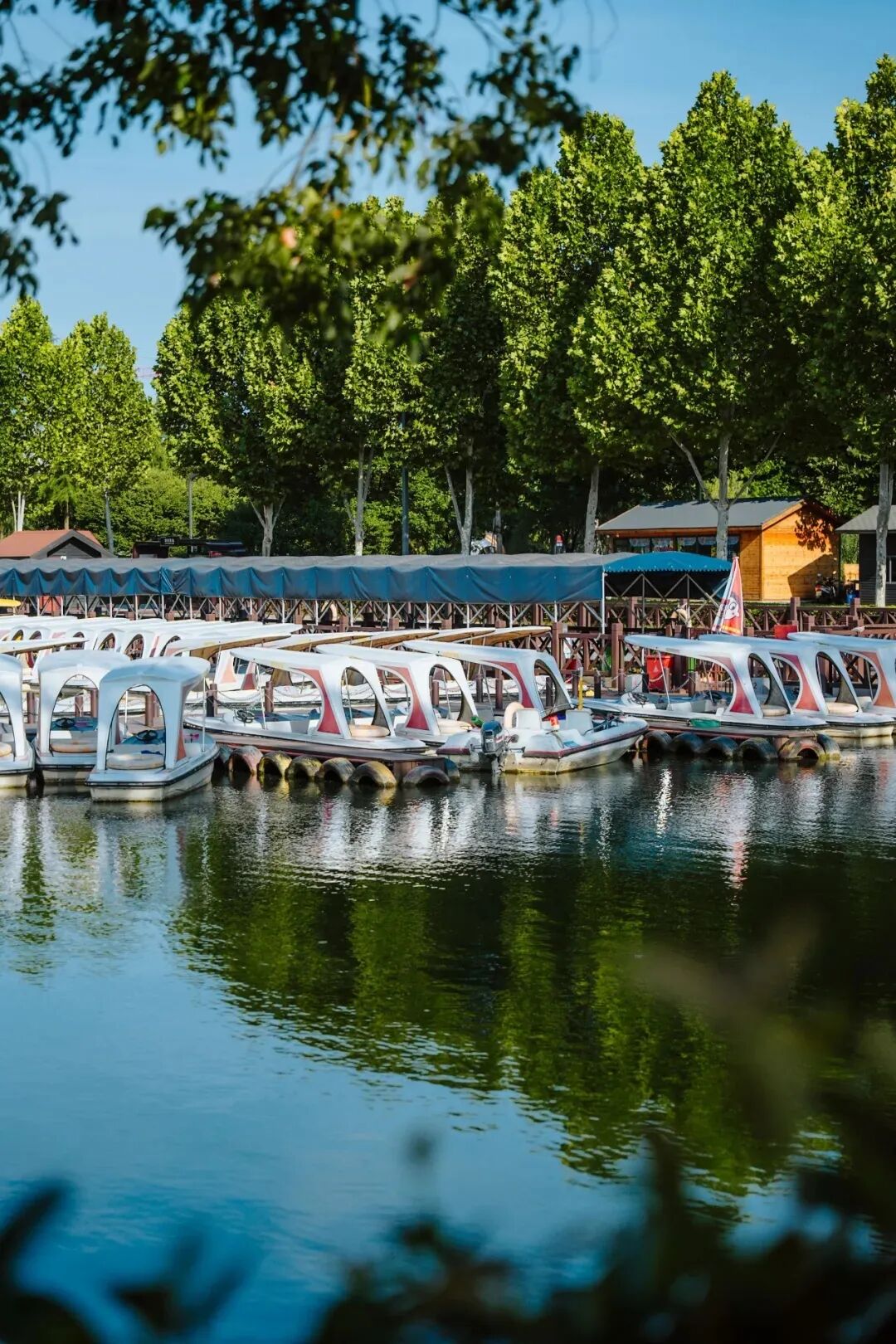 洋湖国家湿地公园二期的游船码头有多种造型的电动船、脚踏船:白色海军风、黄色可爱风,统统敞开式设计,既遮阳又透气。