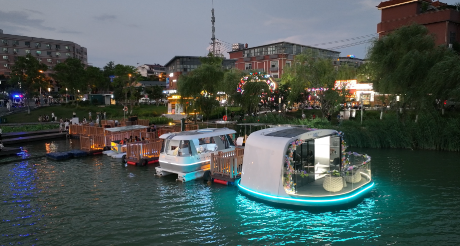 这个暑假,后湖的湖面上来了群“神秘新物种”——全球首款L4级无人驾驶游船,船身像漂在水上的“飞碟”。项目初期投放的多种类游船,精准匹配不同人群需求。
