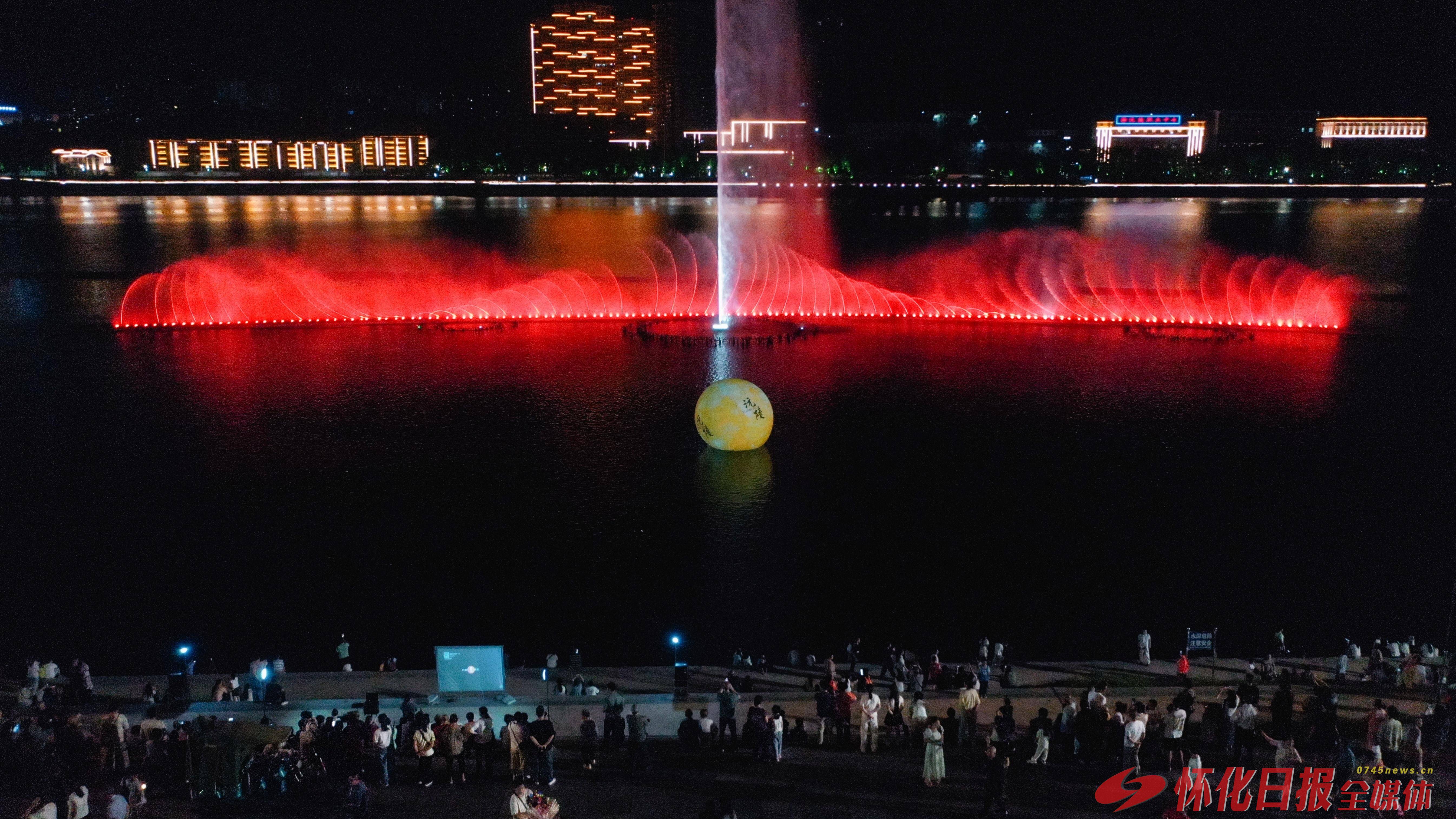 当晚,龙舟广场人山人海,沅江水畔音乐灯光秀盛大开启,音乐喷泉如梦似幻。据了解,国庆假期,游客在此处可欣赏超级月亮、音乐喷泉,体验沅江夜游等。