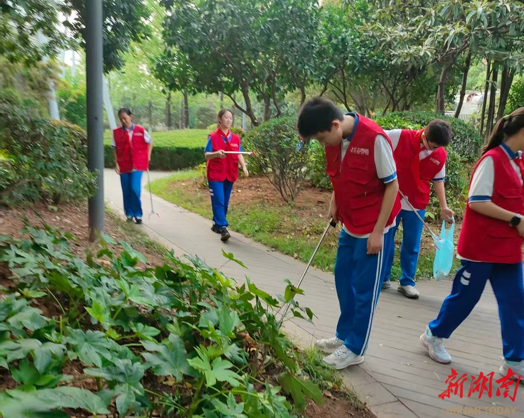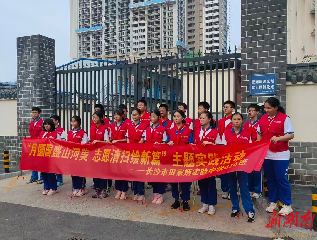 国庆前夕,长沙市田家炳实验中学425班20多名学生身穿志愿者服,手拿工具袋,来到五一广场清理墙上的“牛皮癣”等。“国庆长沙美,学生添新颜。”班主任尹向阳老师说,这不仅是一次劳动体验,更是一场心灵洗礼。(周军 摄影报道)
