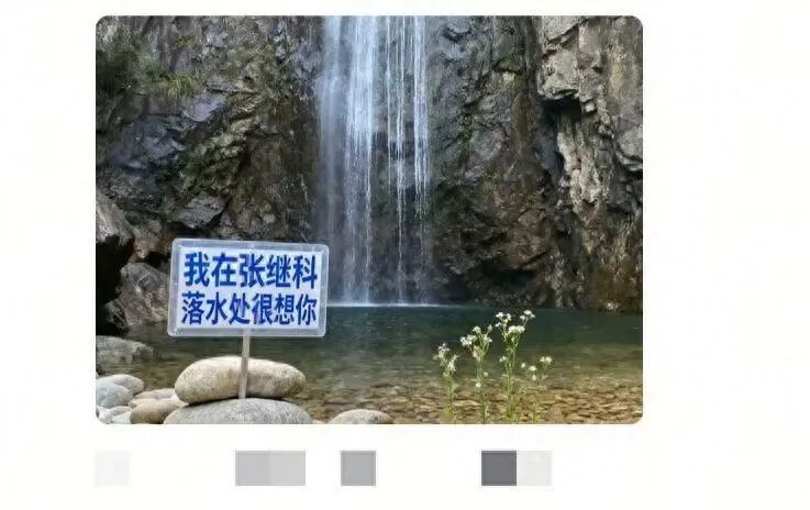 张继科落水视频在网上引发关注后,有网民称景区有了新景点“张继科落水处”。有图片显示,张继科落水的地方放置了写有“我在张继科落水处很想你”字样的宣传牌。然而,也有网民称“图是网友开玩笑的。”