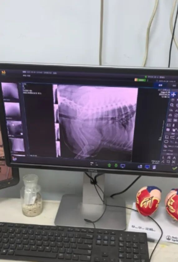 主人带狗狗去医院拍片。网络截图。