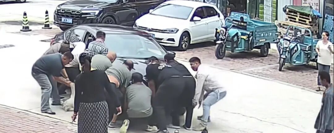 近日,山东烟台,有网友发布监控视频,自家的胖狗躺在路中间,一辆黑色的车子经过,没看到它,车子碾过狗狗把它压在车轮下。听到狗狗的一声惨叫,周围的人聚了过来,他们合力把车子搬了起来,狗狗被拖了出来。