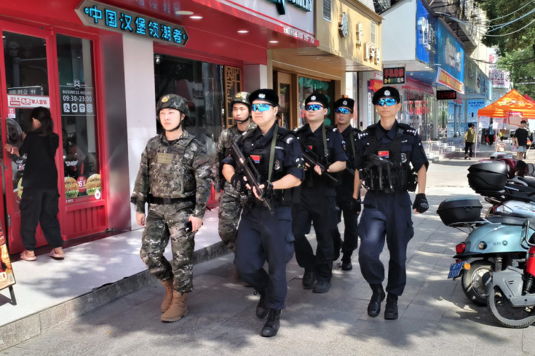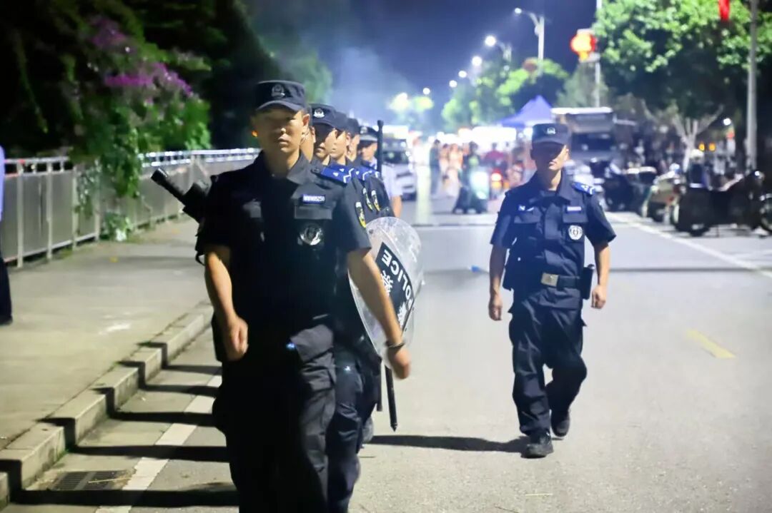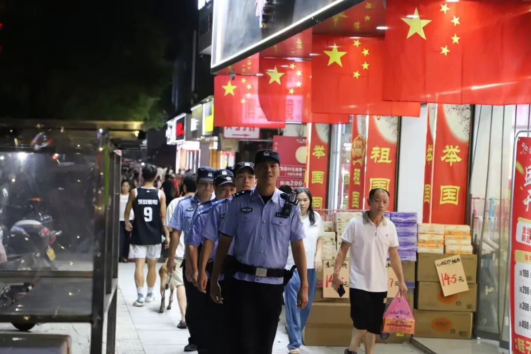 ▲东安公安屯警街面,加强重点部位、重要目标和人员密集场所的安全防范,守护节假日的烟火气。
