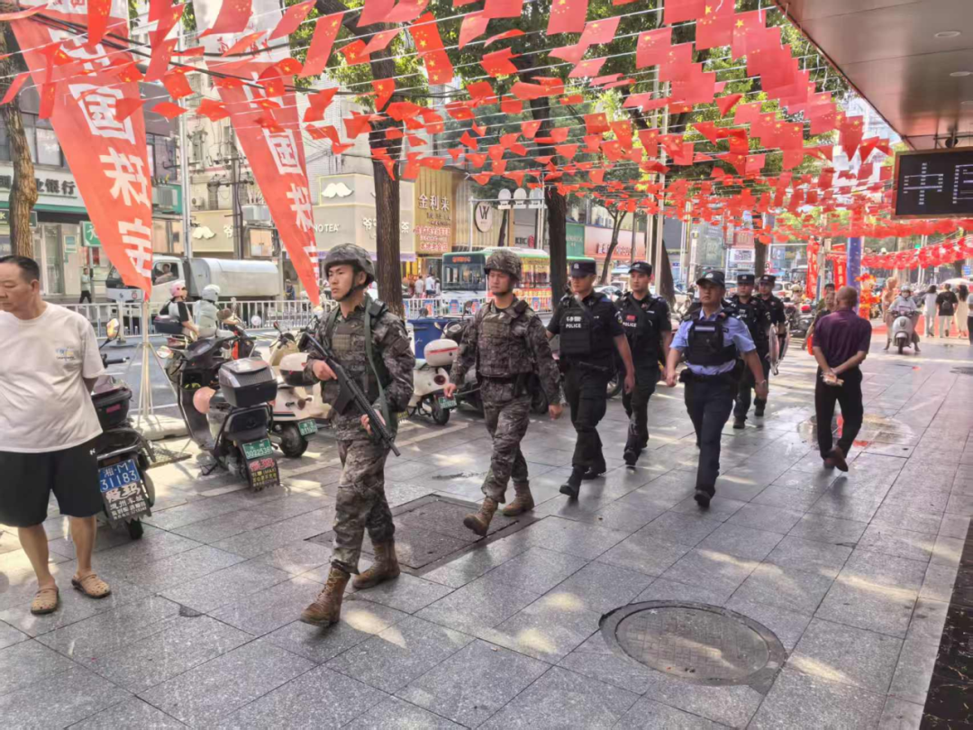 ▲道县公安巡特警与武警武装联勤巡逻,对县城人员密集场所、商业中心徒步巡逻,切实提高见警率。