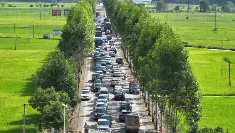 ▲10月3日上午,江永县公安局交警大队利用无人机巡查S348线发现堵车点,通过无人机空中喊话进行疏导,并立即组织铁骑到现场处置堵塞点,迅速疏通道路。