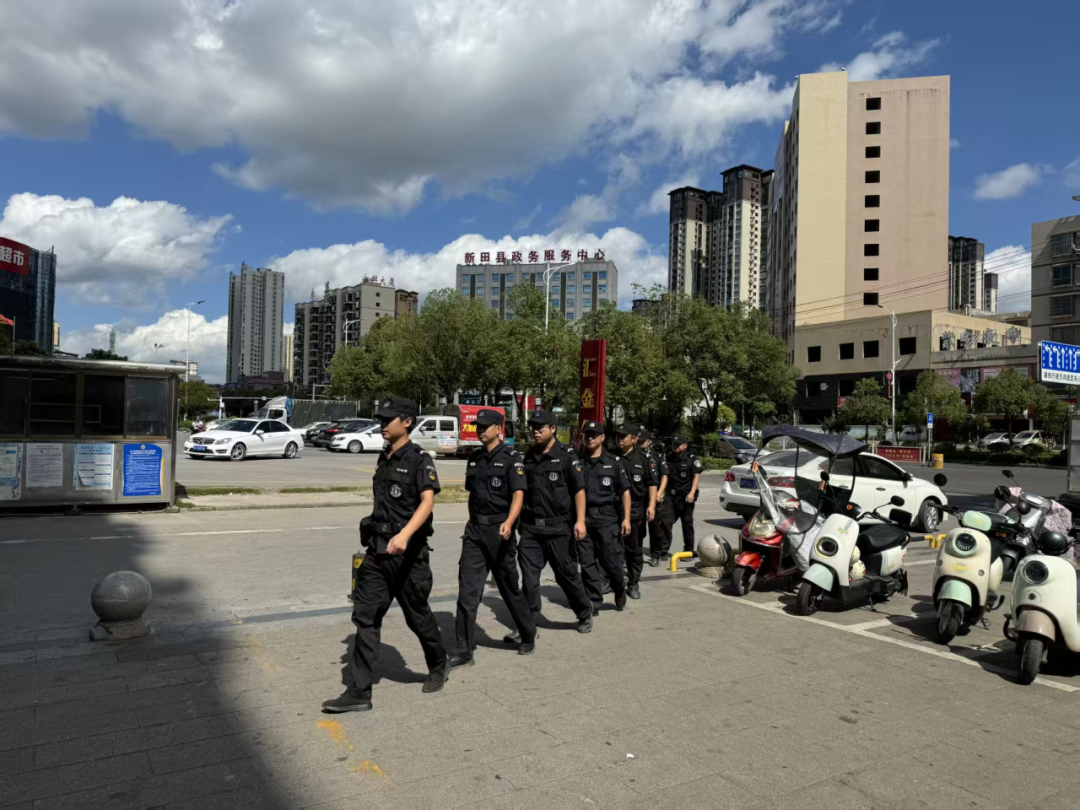 ▲节日期间,新田公安采取车巡与步巡结合的方式,加大对重点区域、路段的巡逻力度,让安全“看得见”。