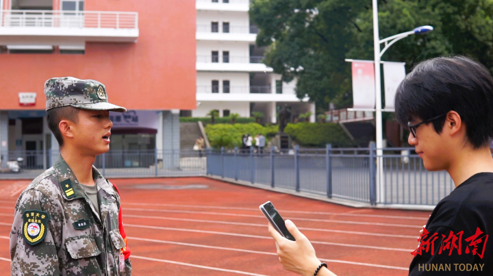 (图为军训团连长接受采访)