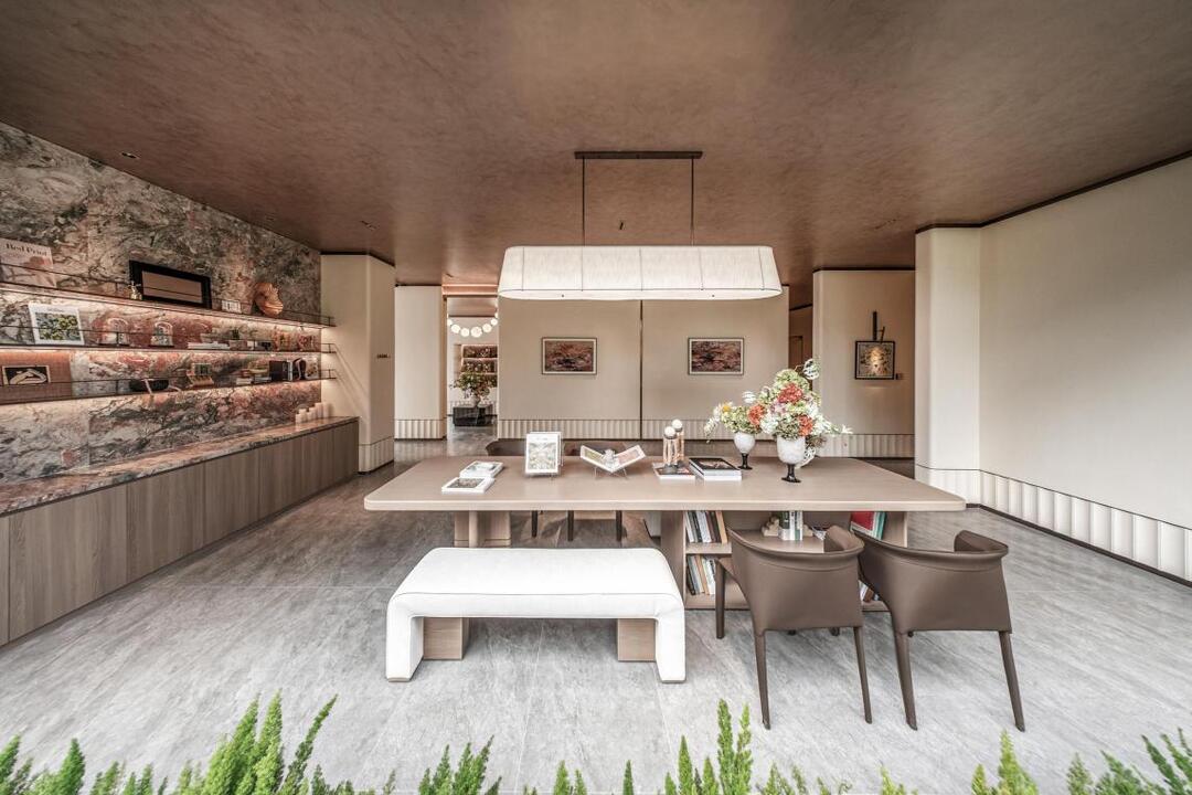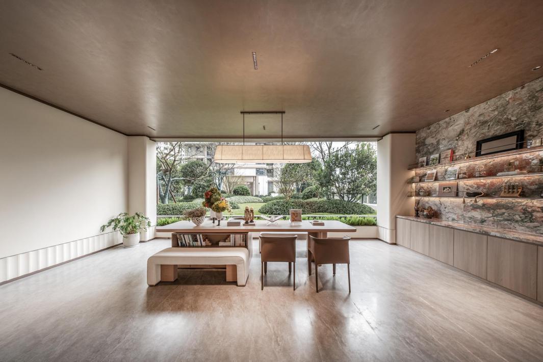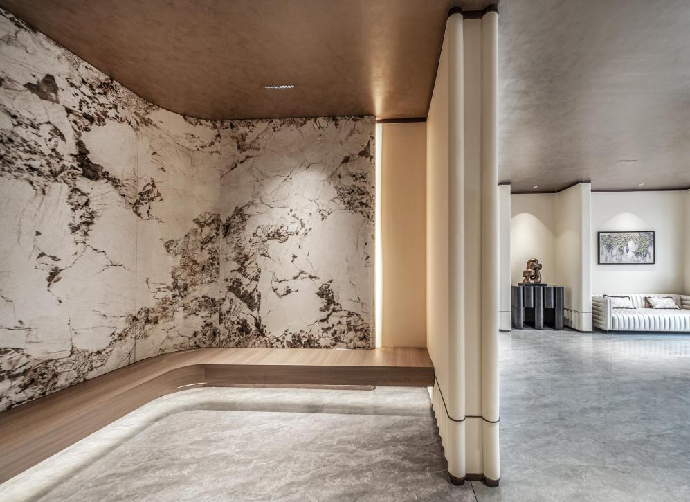 远离高饱和色彩炫目,以低饱和色阶构建空间基底,浅米白、浅木色作为空间主色调,形成温润视觉温度。秉承“less is more”的现代极简主义的美学哲思,让视觉舒缓,让心境放松。以褪去浮华后的精髓,焕发更具生命力的品位表达。