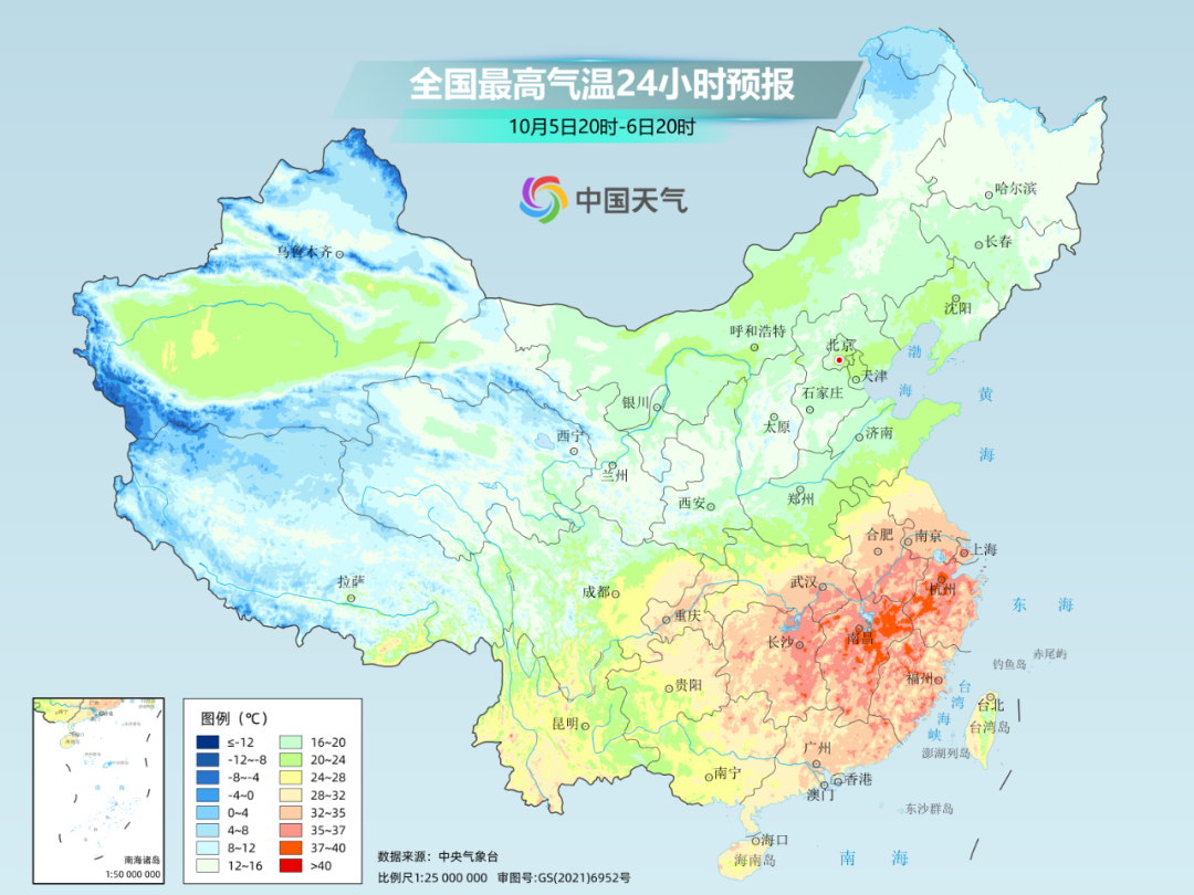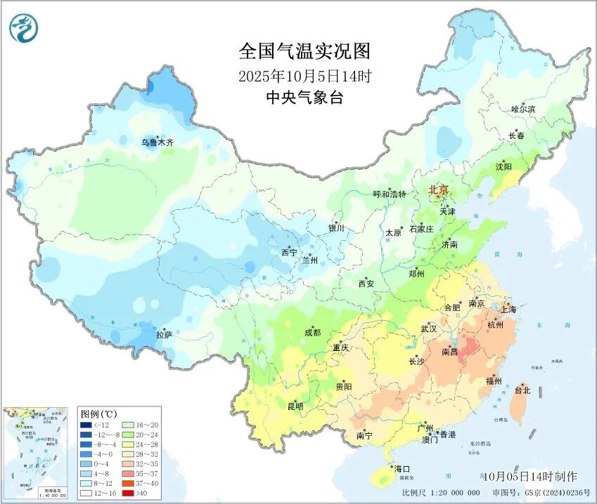 当北方在冷空气中“瑟瑟发抖”时,南方却依然深陷高温“烤”验。截至今天下午14时,浙江、福建、江西依旧包揽全国高温榜前十,浙江常山38.1℃领跑,多地体感温度超过40℃,仍在盛夏中。