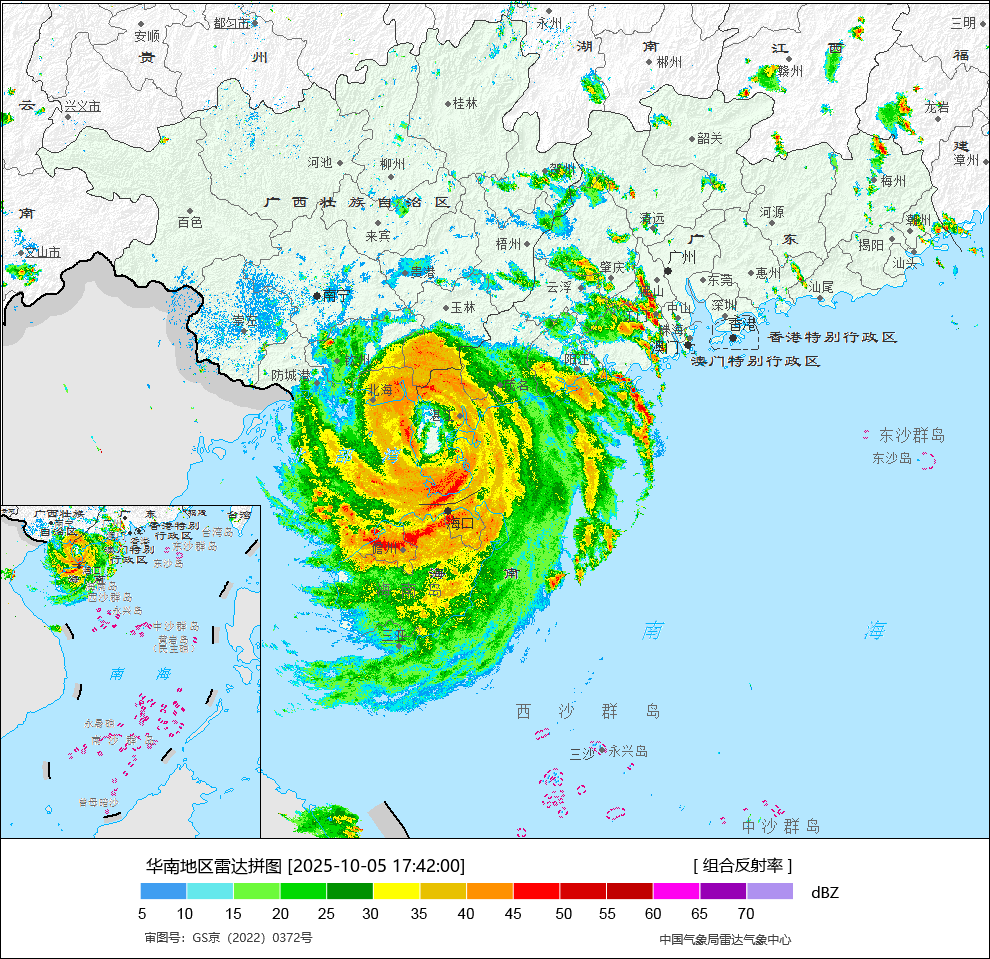 受其影响,今天夜间至明天,海南岛中西部、广东西南部、广西南部和西部等地部分地区有暴雨到大暴雨,局地特大暴雨。南海西北部、北部湾、琼州海峡、广西南部及沿海、广东西南部及沿海、海南岛沿海将有6至8级、阵风9至10级的大风,其中,台风中心经过的附近海域或地区风力有9至11级、阵风12至13级。