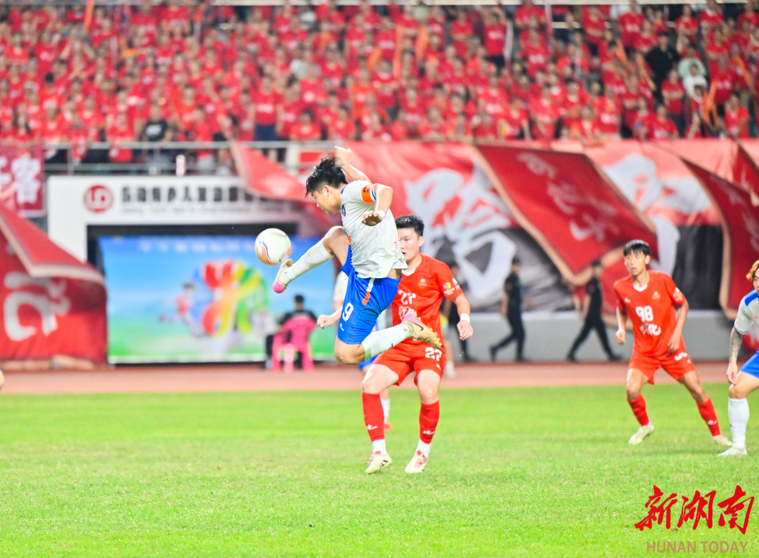 10月4日怀化主场比赛十分激烈。益阳队在第23分钟率先破门得分,怀化队发起一波又一波的反击,却被对方化险为夷。直到补时最后一分钟,怀化队边路传中,老将肖涵拍马赶到,一脚垫射,皮球带着弧线飞入球门。怀化队以1比1的比分绝平益阳队,实现进球、积分双“破零”。