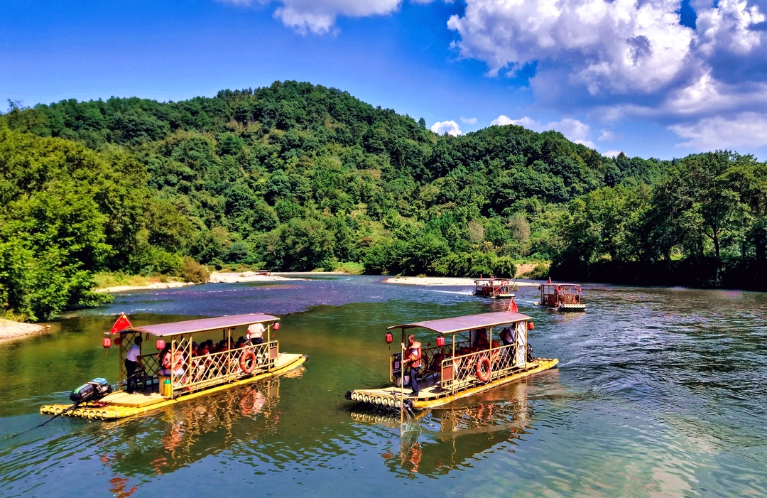 此外,水上运力也得到有效补充。为满足游客对夫夷江漂流的热情,节前景区在原有16张排筏的基础上又新购置了3张排筏投入运营。这一举措有效缓解了原有排筏在高峰期的运力紧张问题,让更多游客能够如愿以偿,悠然泛舟于碧水丹崖之间,享受“山水画廊”的诗意旅程。