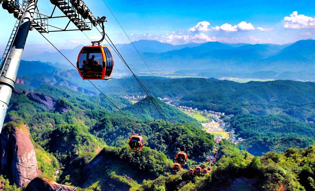 崀山景区内部交通的全面优化,则是确保游客“进得来、散得开、玩得好”的关键。首先是空中走廊运力倍增。投资2.6亿元改造升级的八角寨客运索道及配套项目已全部完工并投入营运。这条索道采用全球顶尖的吊厢客运索道系统,配备55个8人座全封闭全景式天窗客厢,单向客运量可达每小时1600人次、日客运量1.28万人次,相比改造前运力成倍提升,不仅让游客能够轻松“御风而行”,俯瞰丹霞峰林的壮美,更极大地缓解了登山步道的压力,提升了游览效率与舒适度。