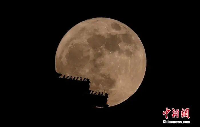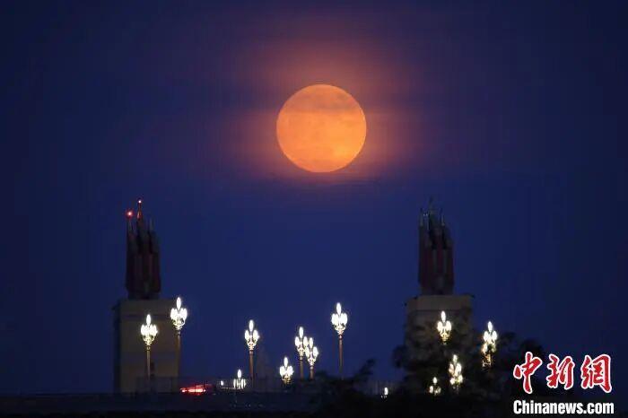 一轮“超级月亮”现身南京上空。中新社记者 泱波 摄